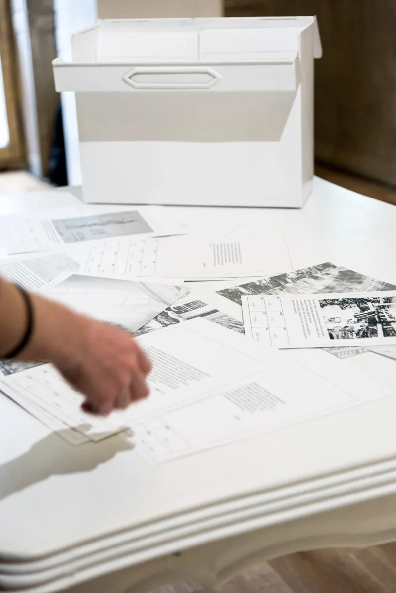 In contrast to the idea of the immaterial cloud, frequently associated with the digital, the format chosen for the installation The Face is that of the flipbook, where paper restores the materiality of the photographic image now embedded in silica. Interactivity thus becomes tangible, and the installation moves away from technological dazzlement to reinscribe photography in its tradition, where it is at the origin of the cinematographic device.