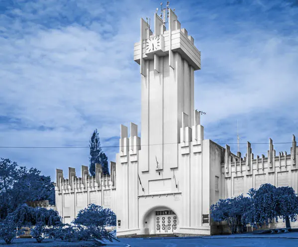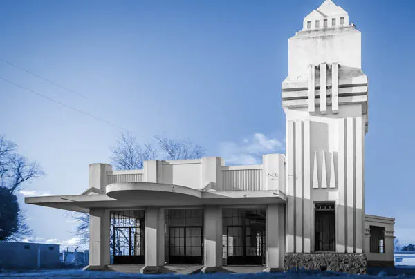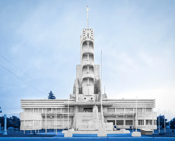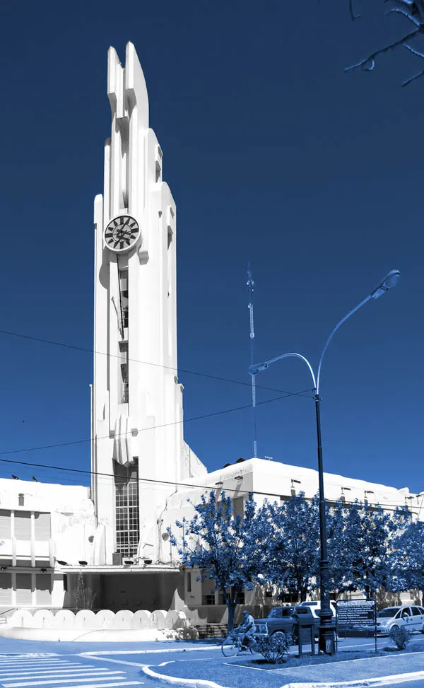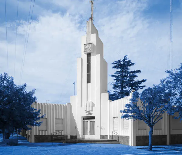 In 1936, Governor Manuel Fresco commissioned the architect Francisco Salamone to build a series of monumental buildings to punctuate villages on the southwestern edge of the province of Buenos Aires, Argentina. These villages, named after the colonels of the conquest of the "desert"[1], shaped the ancient border separating the native populations from the so-called civilization. In just 4 years, the architect built more than 70 large buildings in a hybrid style combining art deco, functionalism, futurism and fascist architecture[2].