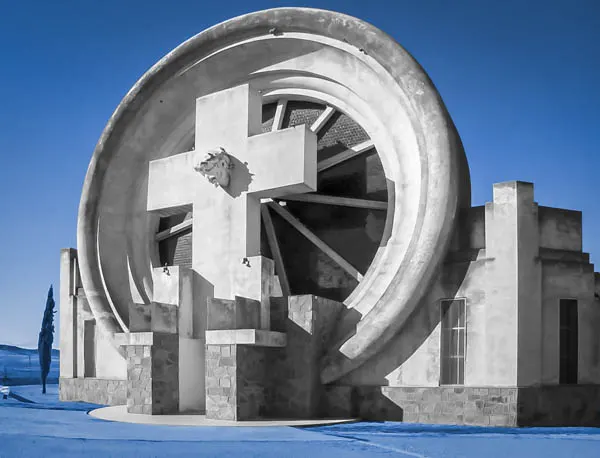 En décalage violent par rapport aux maisons basses de ces petits villages, toujours aussi dépeuplés et austères que dans les années 30, les constructions monumentales de Salamone sont visibles de loin, comme d’immenses totems échappés d’un autre espace-temps.