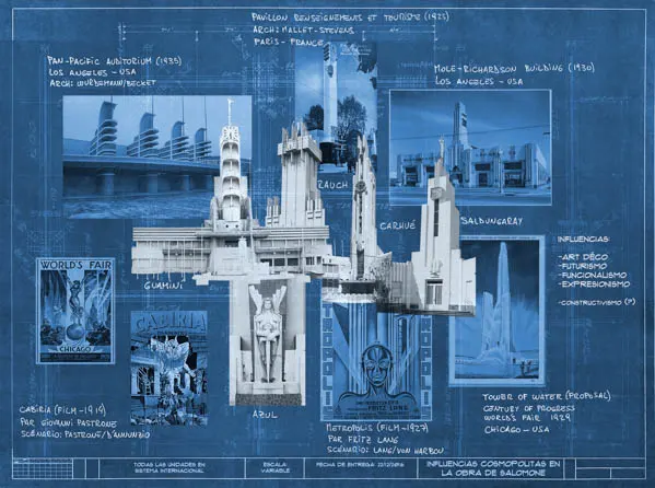 En 1936 le gouverneur Manuel Fresco commande à l’architecte Francisco Salamone la construction d’une série de bâtiments monumentaux, pour ponctuer des villages sillonnant la bordure sud-ouest de la province de Buenos Aires, en Argentine. Ces villages, qui portent les nom des colonels de la conquête du « désert »[1], rythmaient l’ancienne frontière séparant les peuples originaires de la soi-disant civilisation. L’architecte réalise, en seulement 4 ans, plus de 70 bâtiments de grande taille, dans un style hybride combinant l’art déco, le fonctionnalisme, le futurisme, et l’architecture fasciste [2].